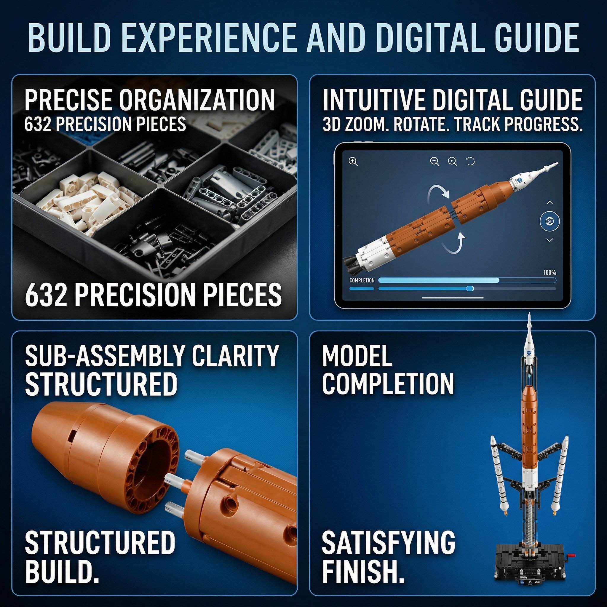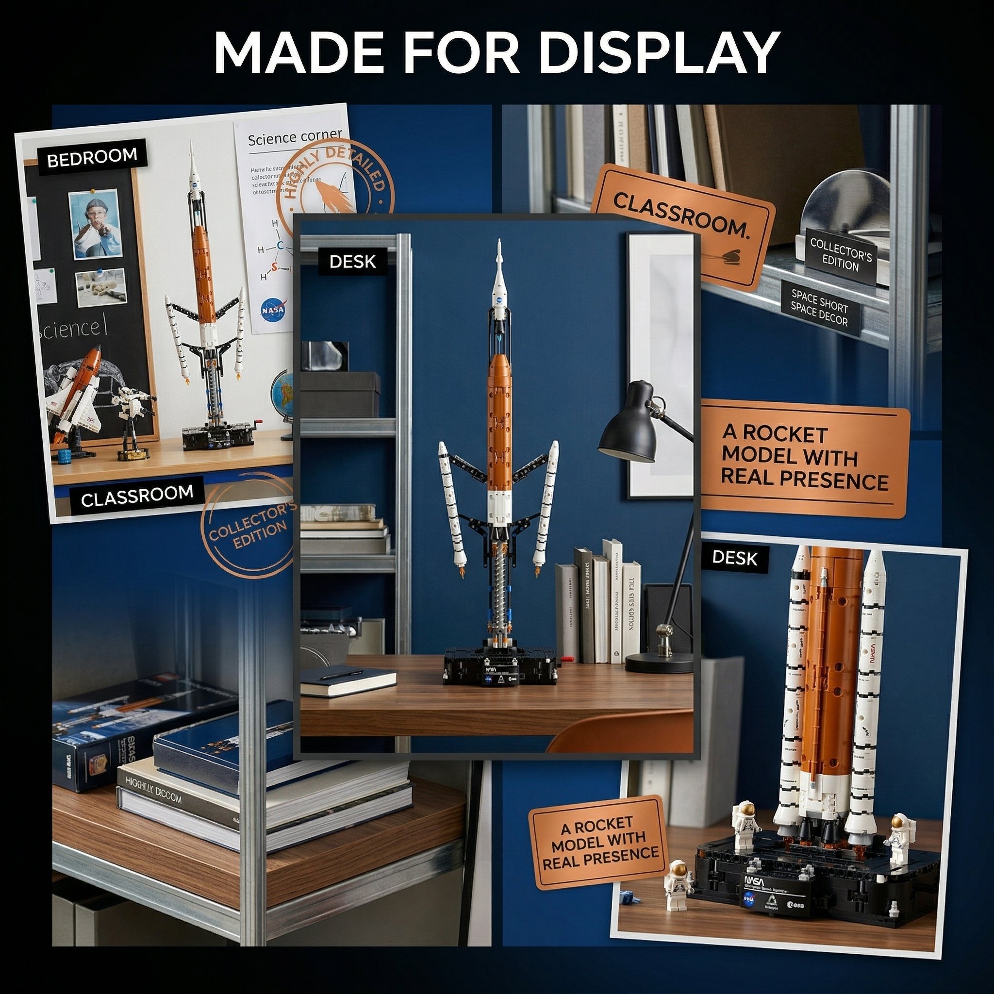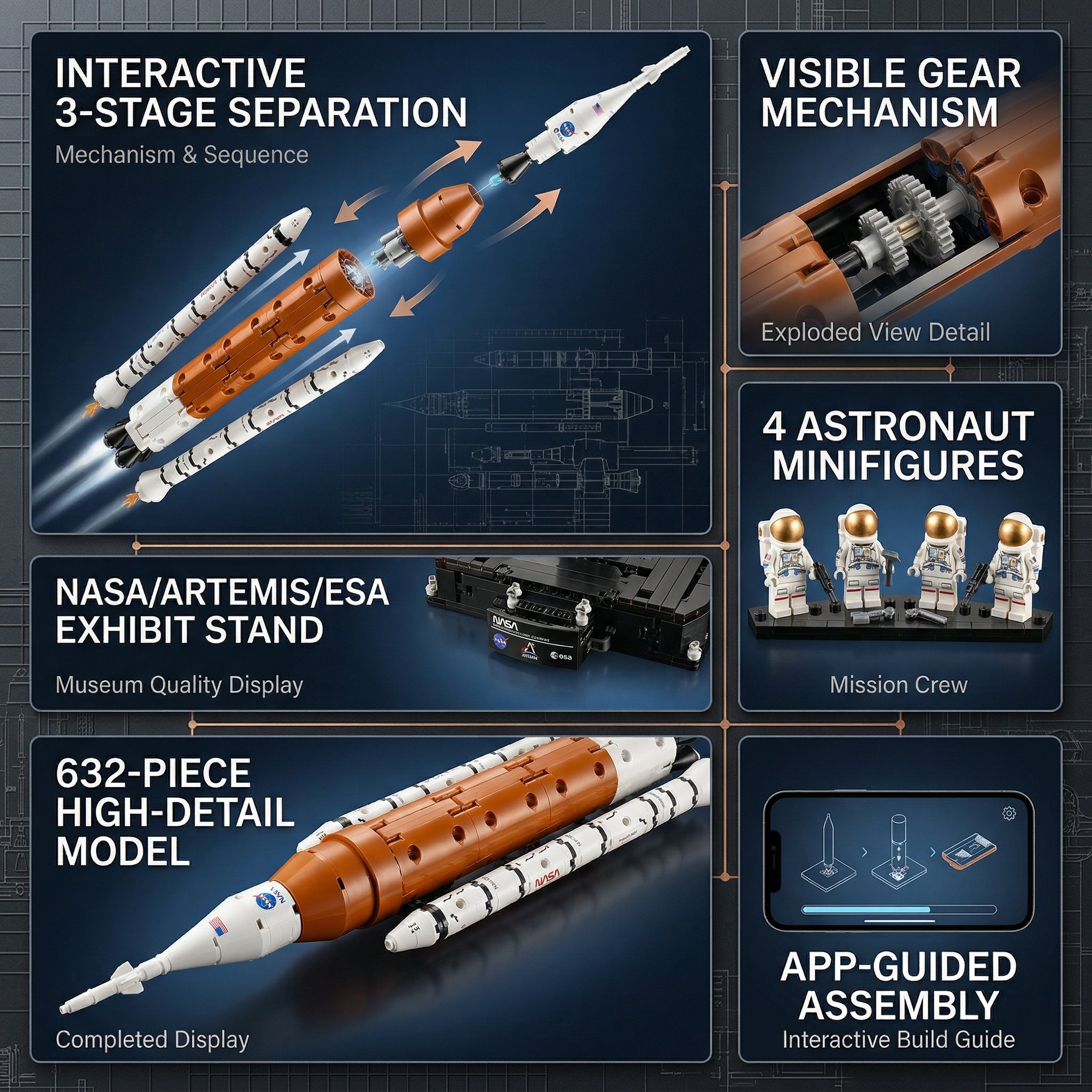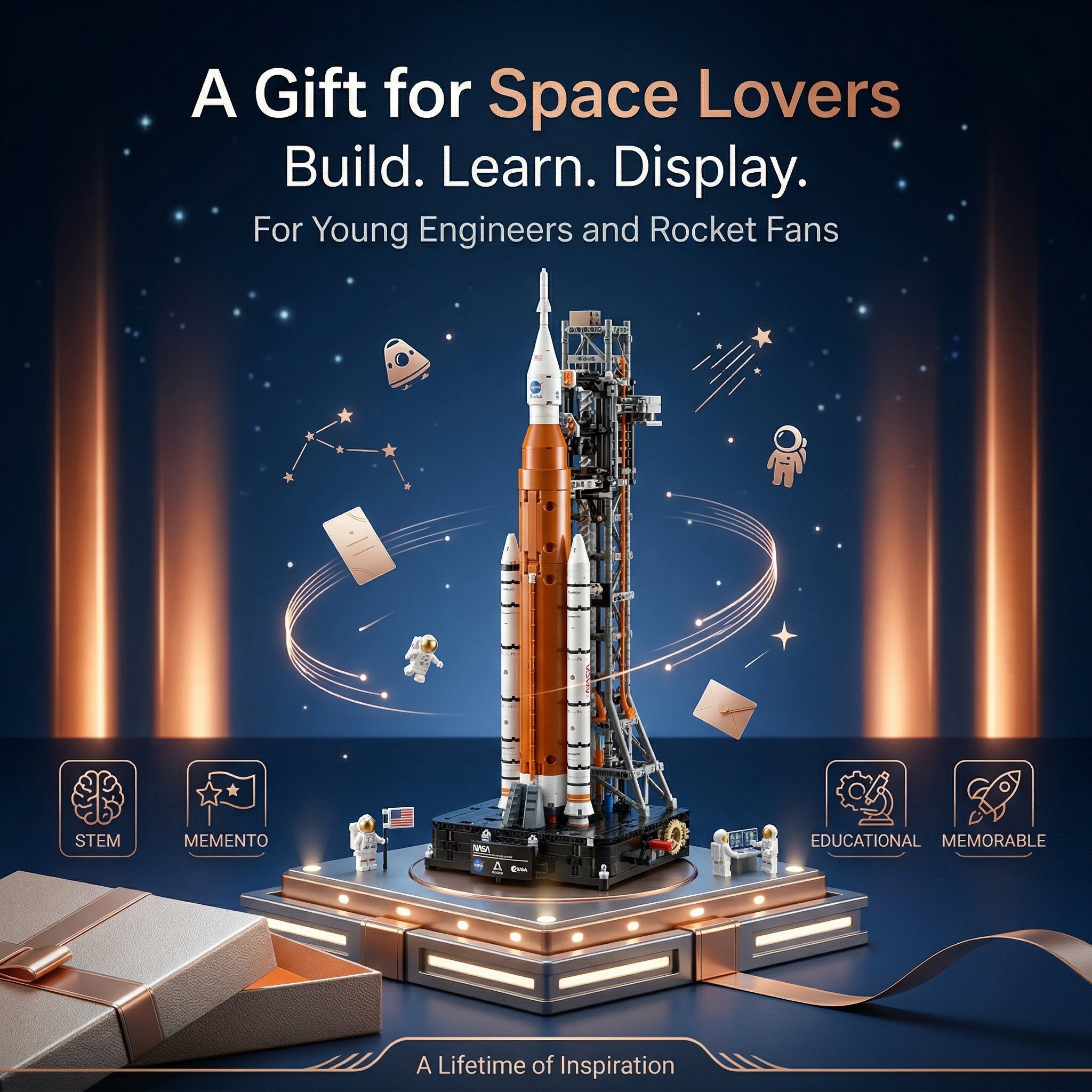 Comes with 4 detailed astronaut nanofigures, a launch base with NASA/Artemis/ESA branding, and an information panel. Build it as a stunning display piece for bedrooms, classrooms, or space-themed collections.